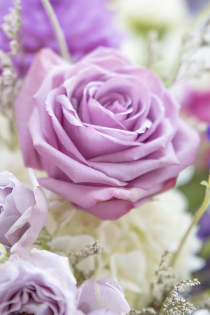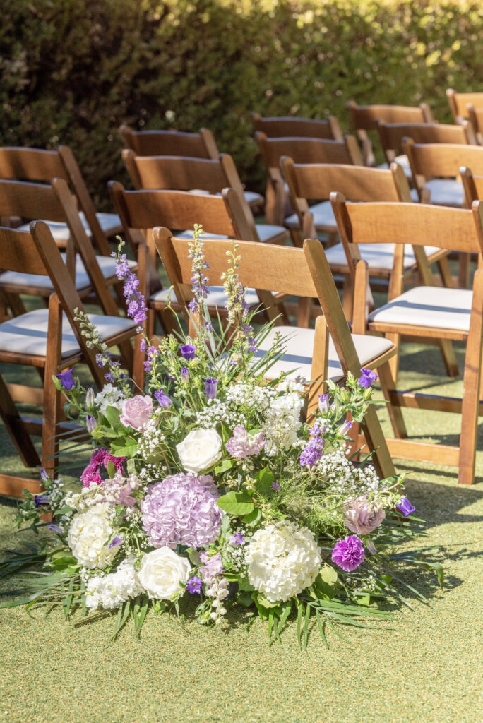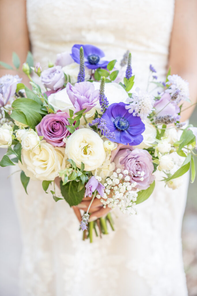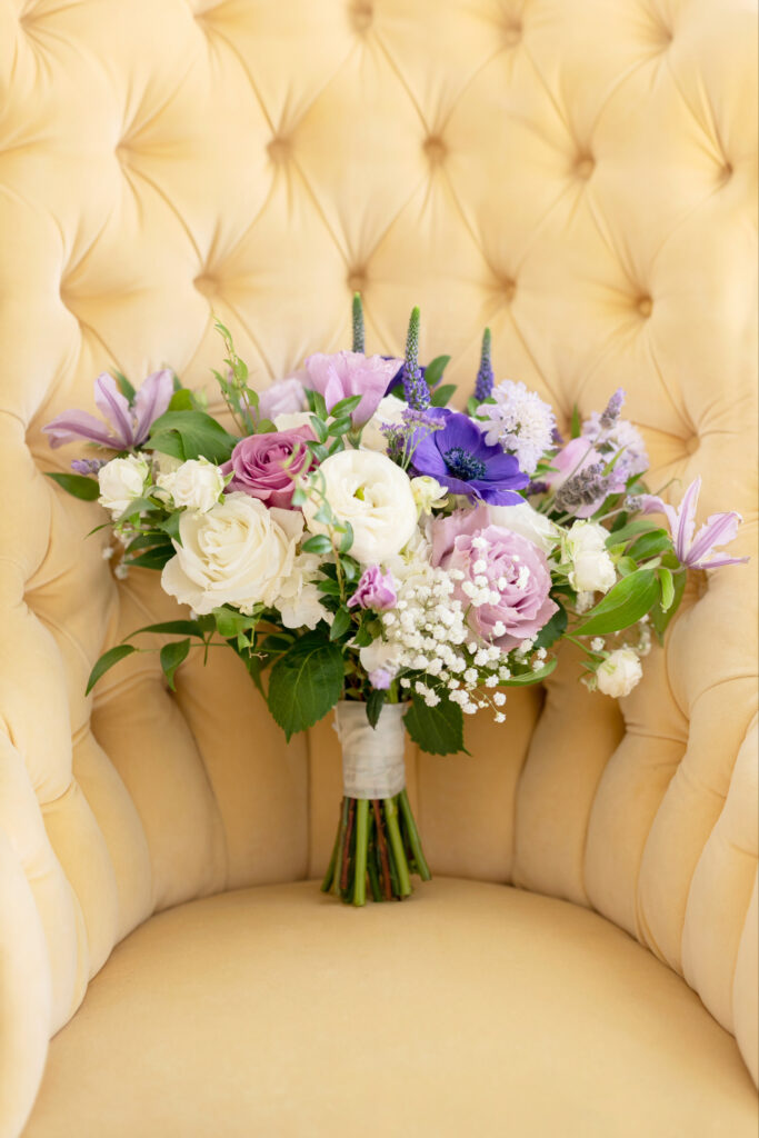 The couple’s wedding palette featured calming shades of purple, lending a soft and romantic tone to the day. Marysable carried a dreamy bouquet of lavender roses, fragrant lavender sprigs, and delicate anemones, thoughtfully designed by the talented wedding and event floral designer Floralisa. Each floral detail beautifully reflected the peaceful, refined atmosphere of the celebration.